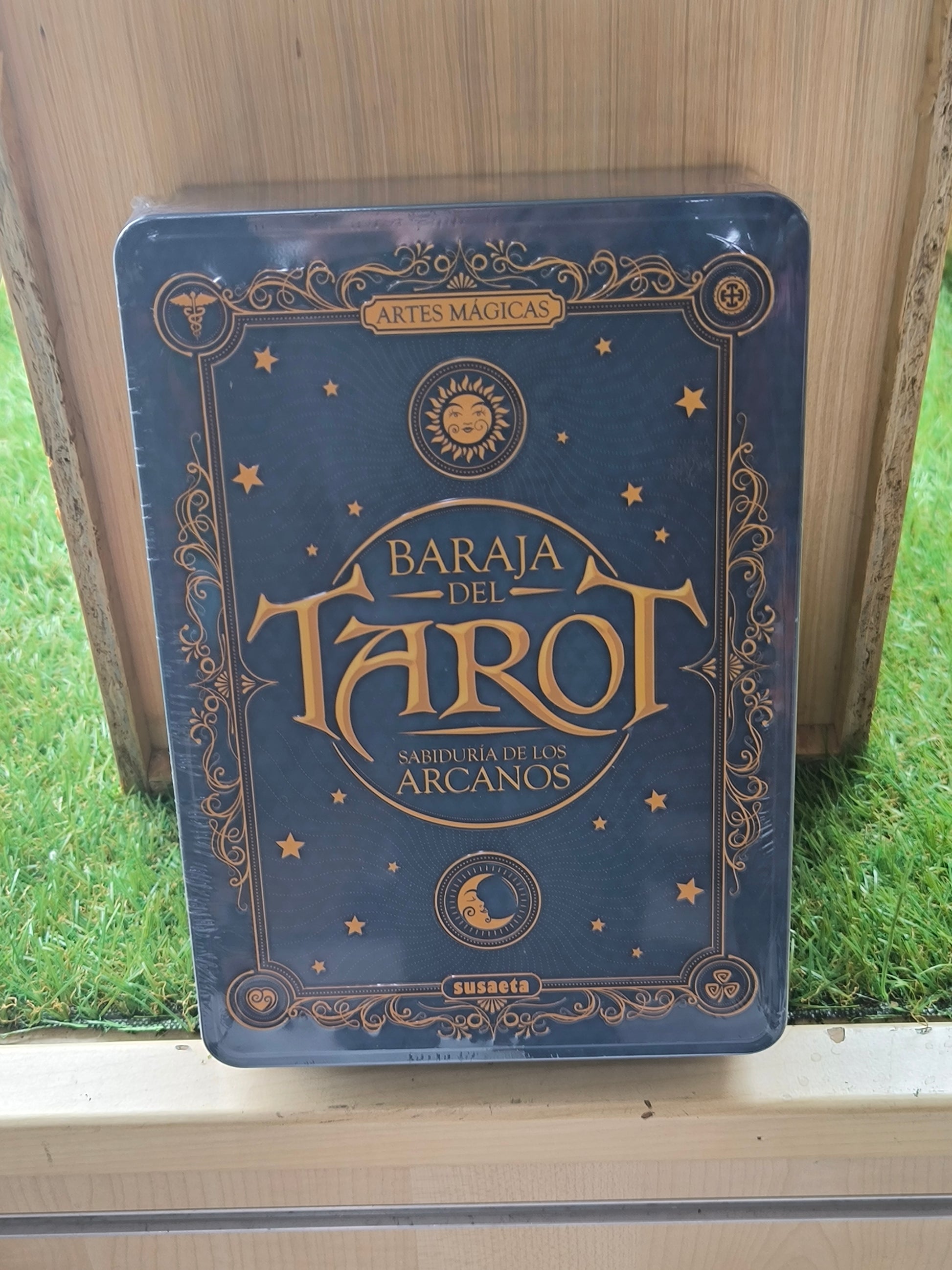 Baraja de cartas del Tarot. Te ayudará a conocer y trabajar con las energías de los arcanos del Tarot ya iniciarte en esta práctica. Incluye lata de metal, libro y baraja de cartas.