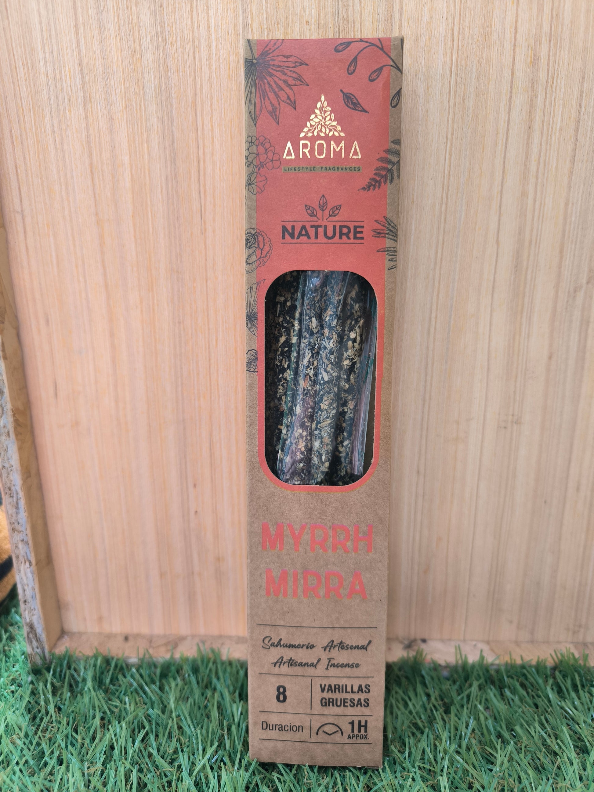 Paquete de varillas de incienso orgánico de Mirra. Formato de 18 Gr.