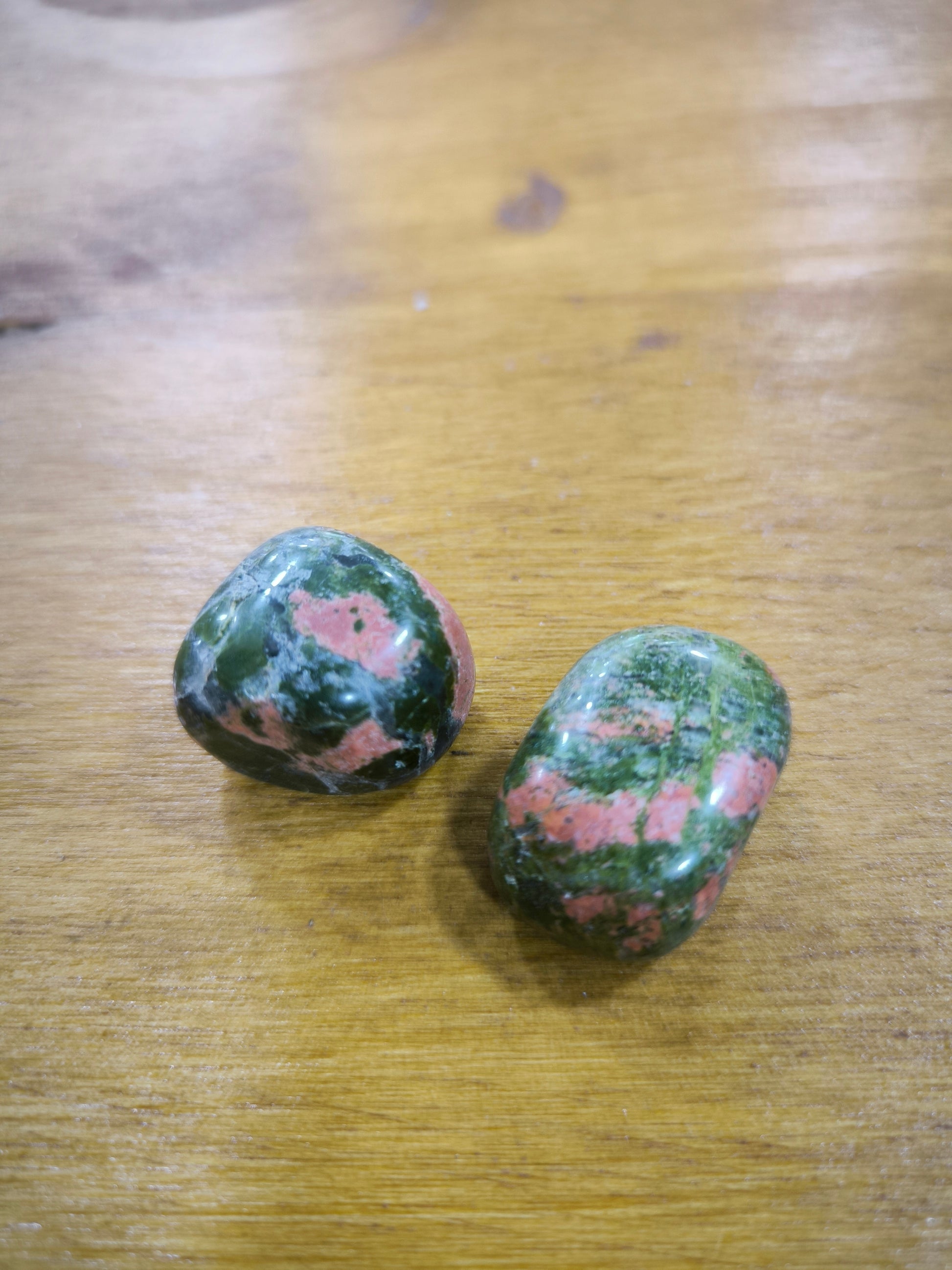 Mineral rodado de Unakita de tamaño aproximado 2,5 Cm.