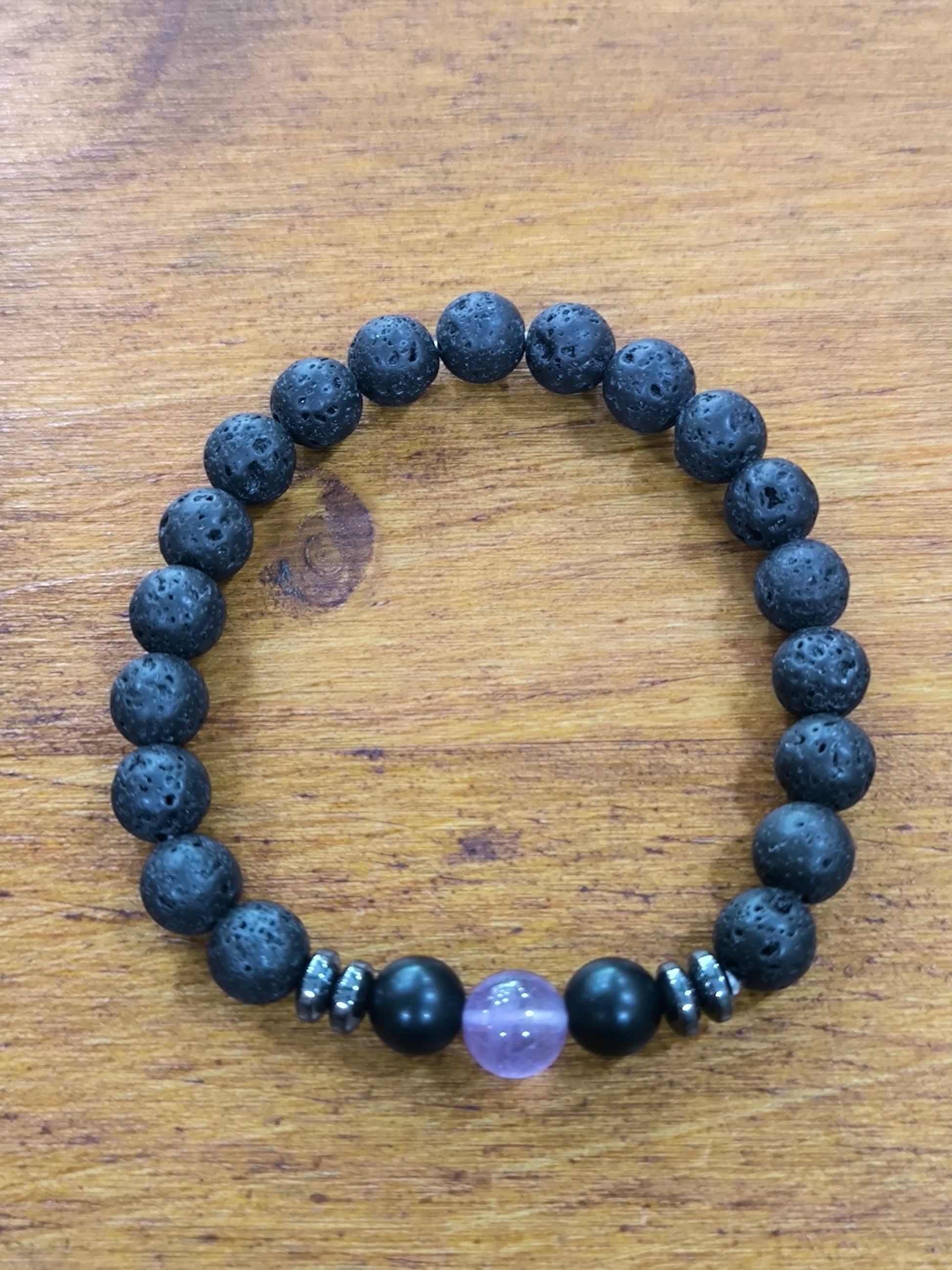 Pulsera de bolitas de mineral natural de Amatista/Volcánica. Tamaño de la bola de 0,7 Mm.