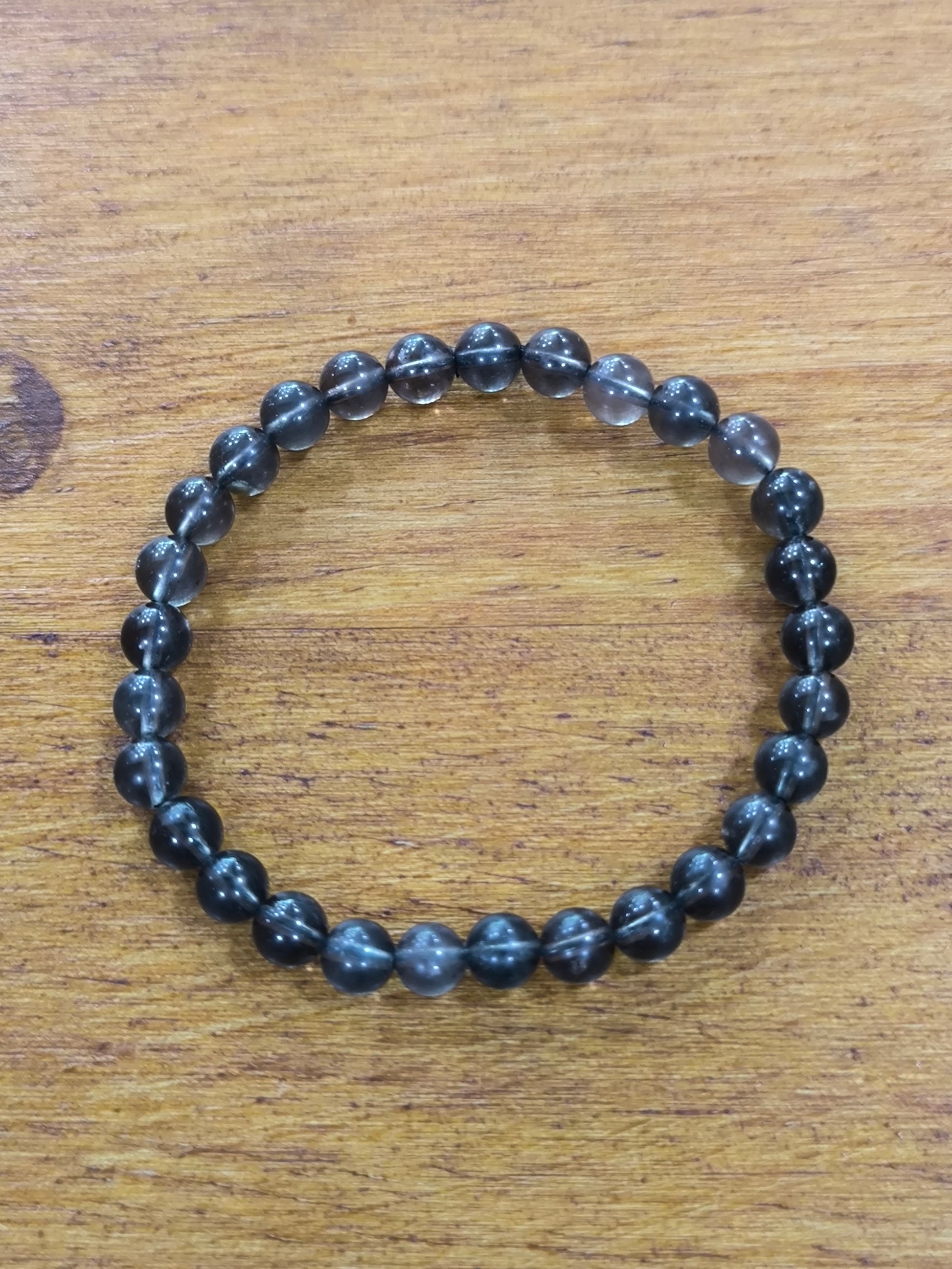 Pulsera de bolitas de mineral natural de Cuarzo Ahumado. Tamaño de la bola de 0,6 Mm.