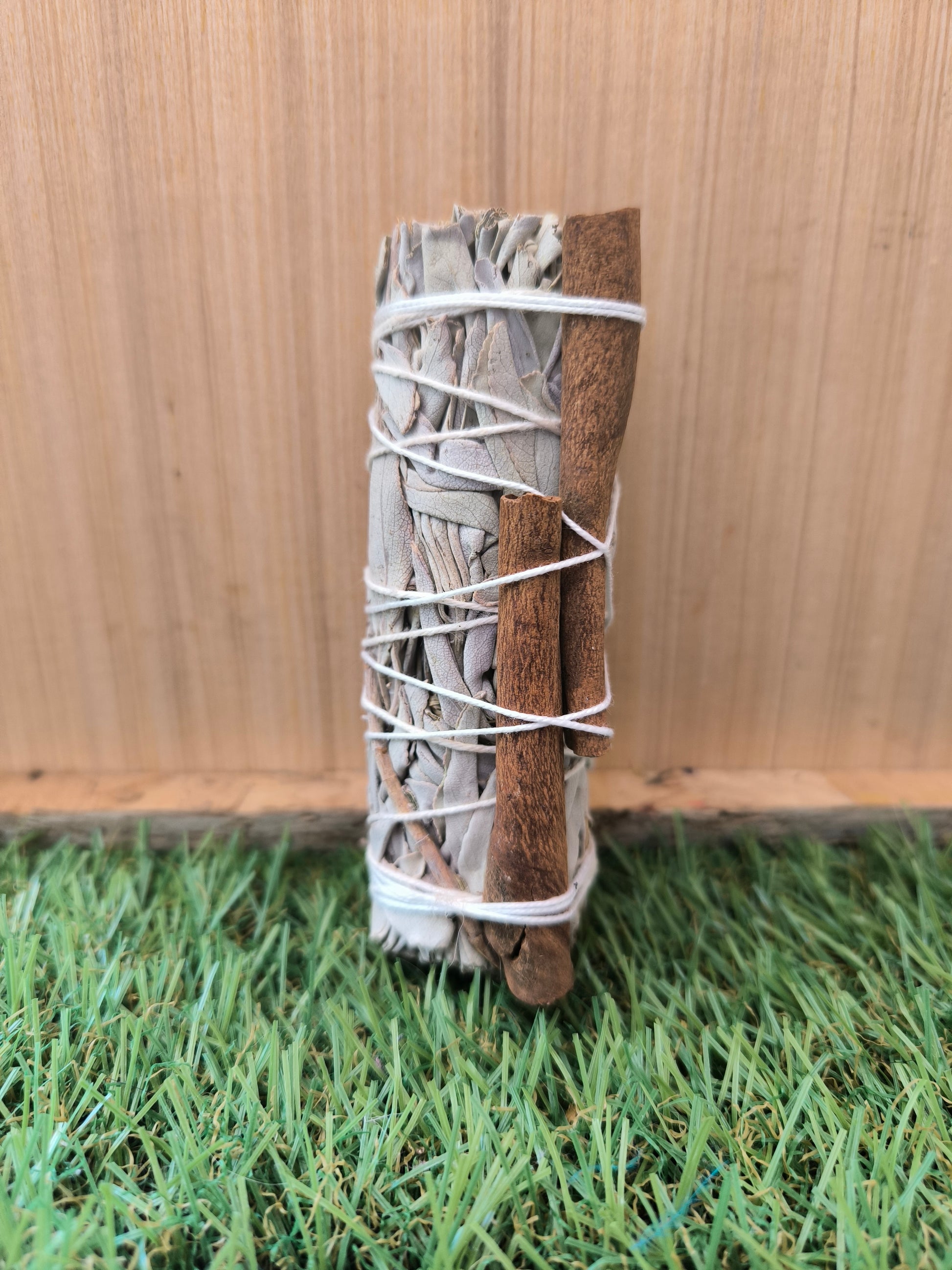 Sahumerio en atado de Salvia Blanca Y Canela. Tamaño aproximado 12 Cm.