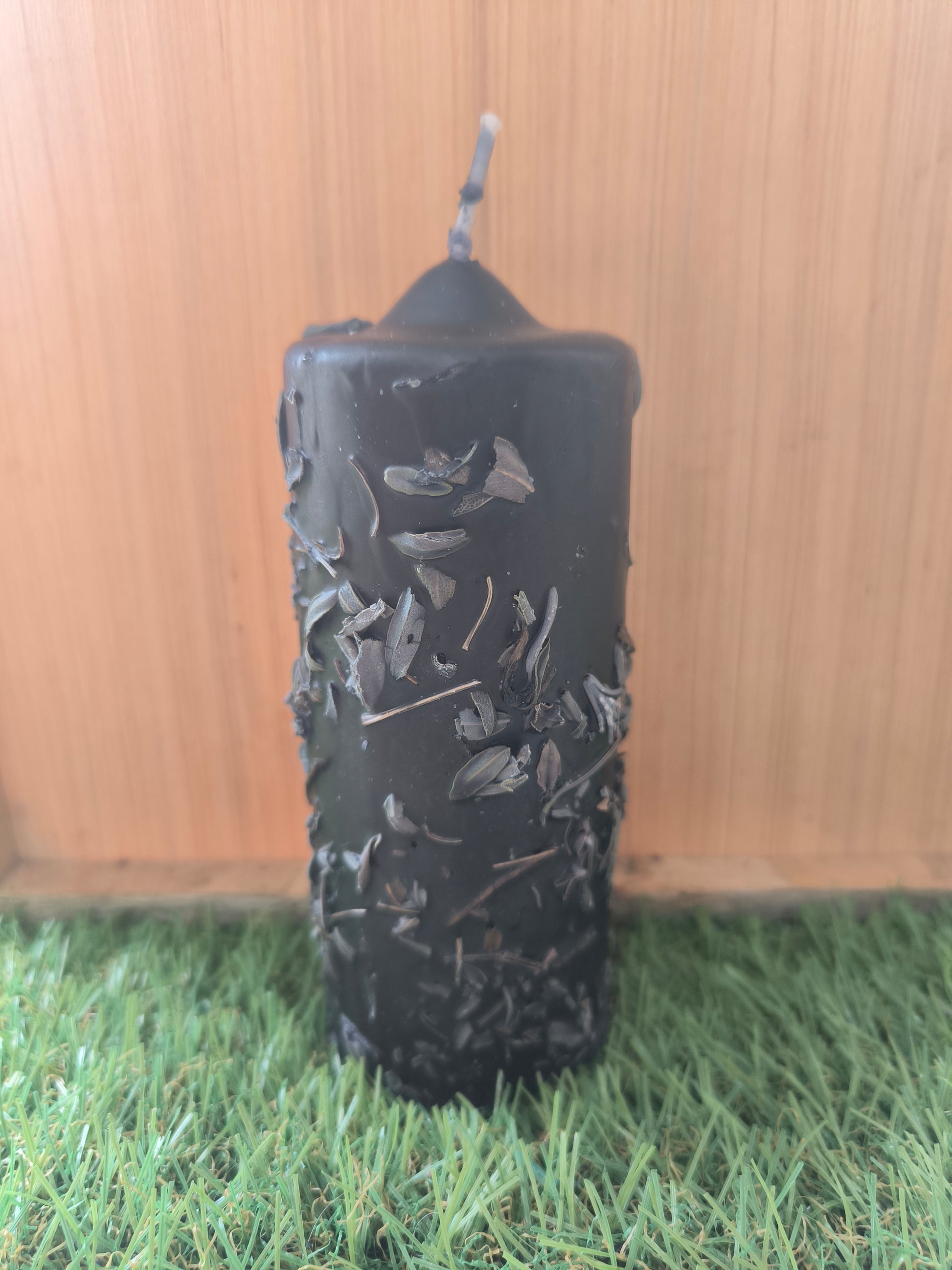 Velón Herbóreo Ritual elaborado con cera, aceites y hierbas naturales. Tamaño aproximado 5,5 cm x 20 cm.