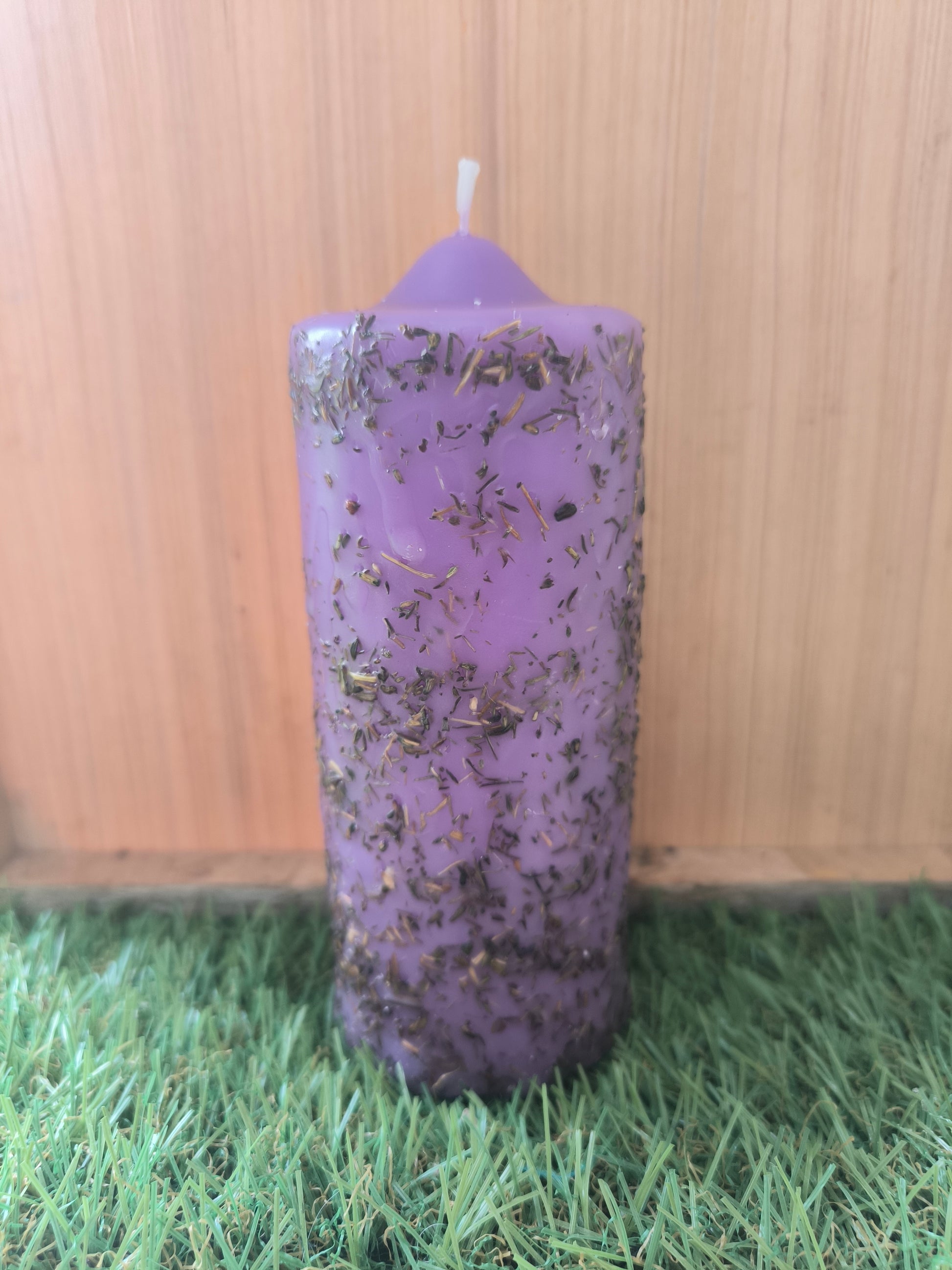 Velón Herbóreo Ritual elaborado con cera, aceites y hierbas naturales. Tamaño aproximado 5,5 cm x 20 cm.